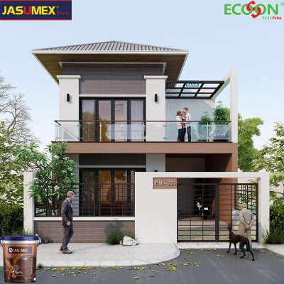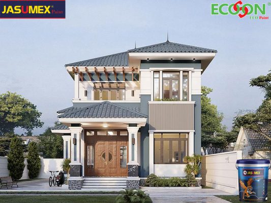 Mẫu nhà 2 tầng mái nhật đơn giản nhưng nổi bật nhất trong thời gian qua, ý tưởng thiết kế mới mẻ, độc đáo, lắp ghép hình khối linh hoạt tạo nên khối nhà hài hòa, màu sắc trang trí tươi mới, hài hòa với khung cảnh nông thôn.